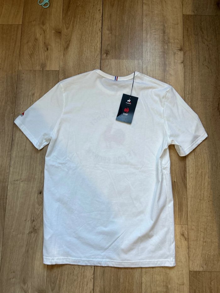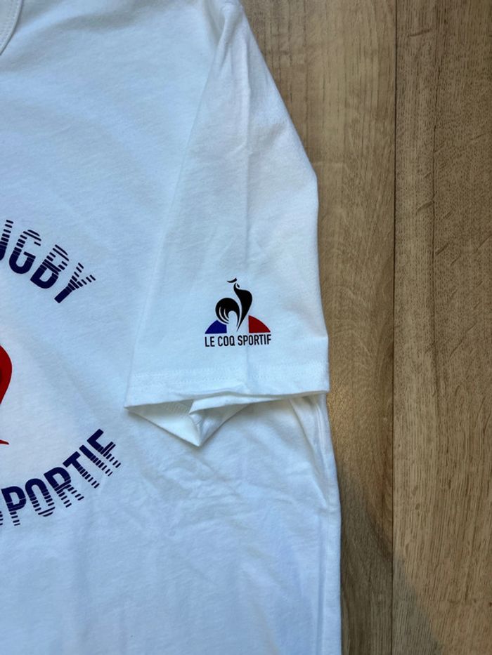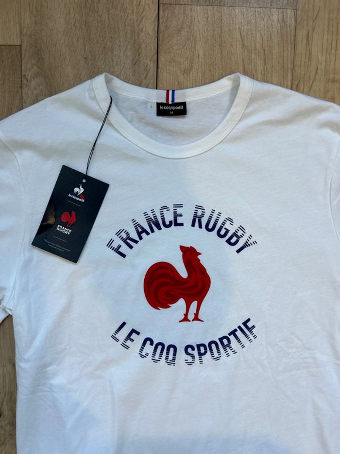 Bonjour, je vous propose c’est magnifique. T-shirt neuf original jamais porté de chez Le Coq Sportif partenariat entre la marque et la FFR récent, champion olympique de rugby a 7 également.