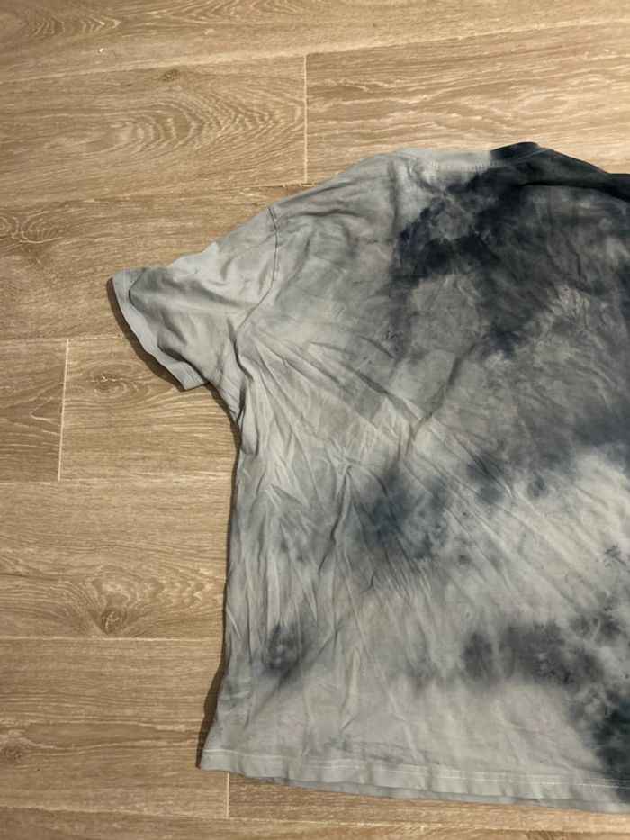 Bonjour, je vous propose ce T-shirt en bon état mais utilisé j’ai essayé de le reteindre en noir il est ressorti comme ça. Trop petit pour moi, je le mets en vente.
