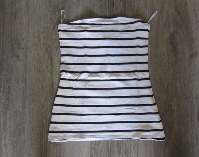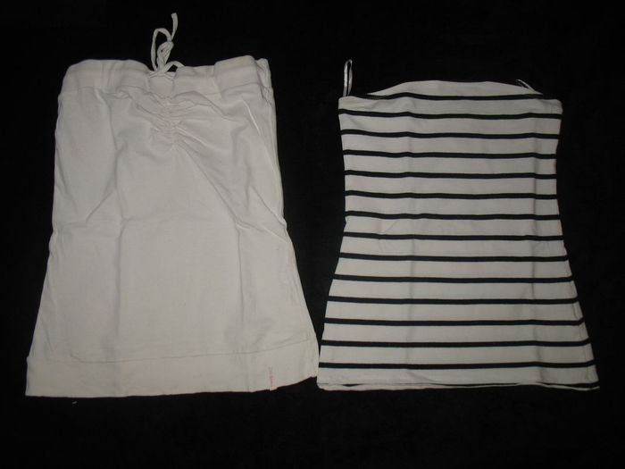 #T34_Femme_Nathg2210 LOT DE 2 DOS NU : 1 BLANC UNI "JENNYFER" + 1 BLANC RAYE "H&M" - TAILLE 34 - n°01 - 1 Dos Nu Blanc - Avec lien devant - Haut élastique autour - Cintré devant - Bas côtelé "JENNYFER" - Taille S - Dimensions largeur : 30 cm et longueur totale : 42cm - Matière : 95% coton et 5% élasthanne. - 1 Dos Nu Blanc Rayé Marine - Haut élastique autour "H&M" - Taille 34 - Dimensions largeur : 30 cm et longueur totale : 38 cm - Matière : 95% coton et 5% élasthanne. Article d’occasion en très bon état - Sans trou - Ni tache - Lavé et repassé pour la vente. Possibilité d'envoyer d'autres photos sur simple demande. Allez voir mes autres ventes, je vide les placards. Beaucoup de vêtements de marque et beaucoup de jouets. Maison non-fumeur - Sans animaux. Réduction lot activée. Remise en mains propres ou possibilité d'envoi au tarif en vigueur à votre charge. Retour Refusé. Pour tout renseignement, n'hésitez pas à me contacter, je répondrai volontiers à vos questions. Réponse Assurée. Pour Consulter mes autres annonces tapez Nathg2210.