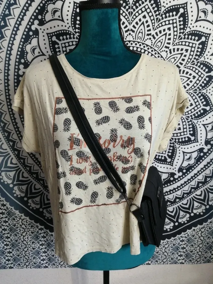- Porté quelques fois - Très bon état #teeshirt #teeshirtfemme #teeshirtjaune #teeshirtjaunepâle #teeshirtjaunefemme #teeshirtamotifs #teeshirtpois #teeshirtmotifsananas #teeshirtananas #teeshirtcachecache #teeshirttaille38 #teeshirttaillem #vetementsete_Mfemmevtc