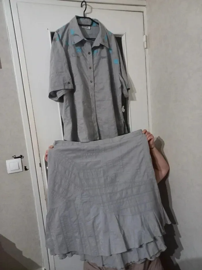 Costume femme jupe et chemise gris et bleu taille 54 portée 1 fois