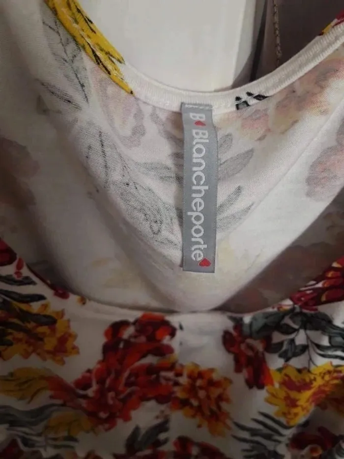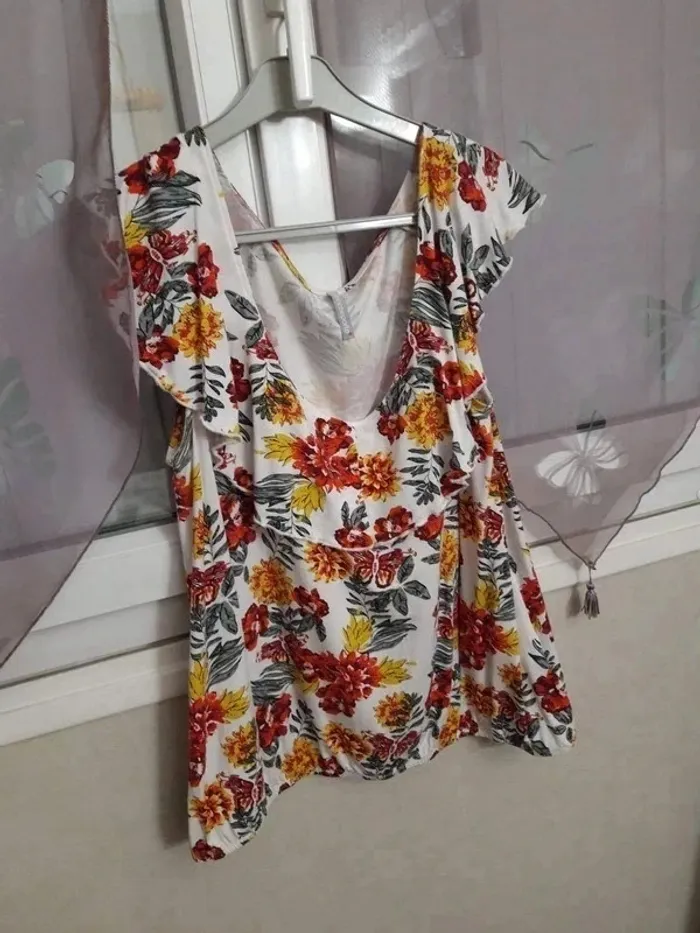 Tee-shirt avec fleurs et volant blanche porte Taille 46/48