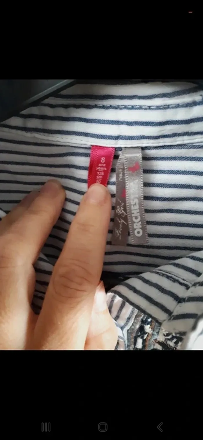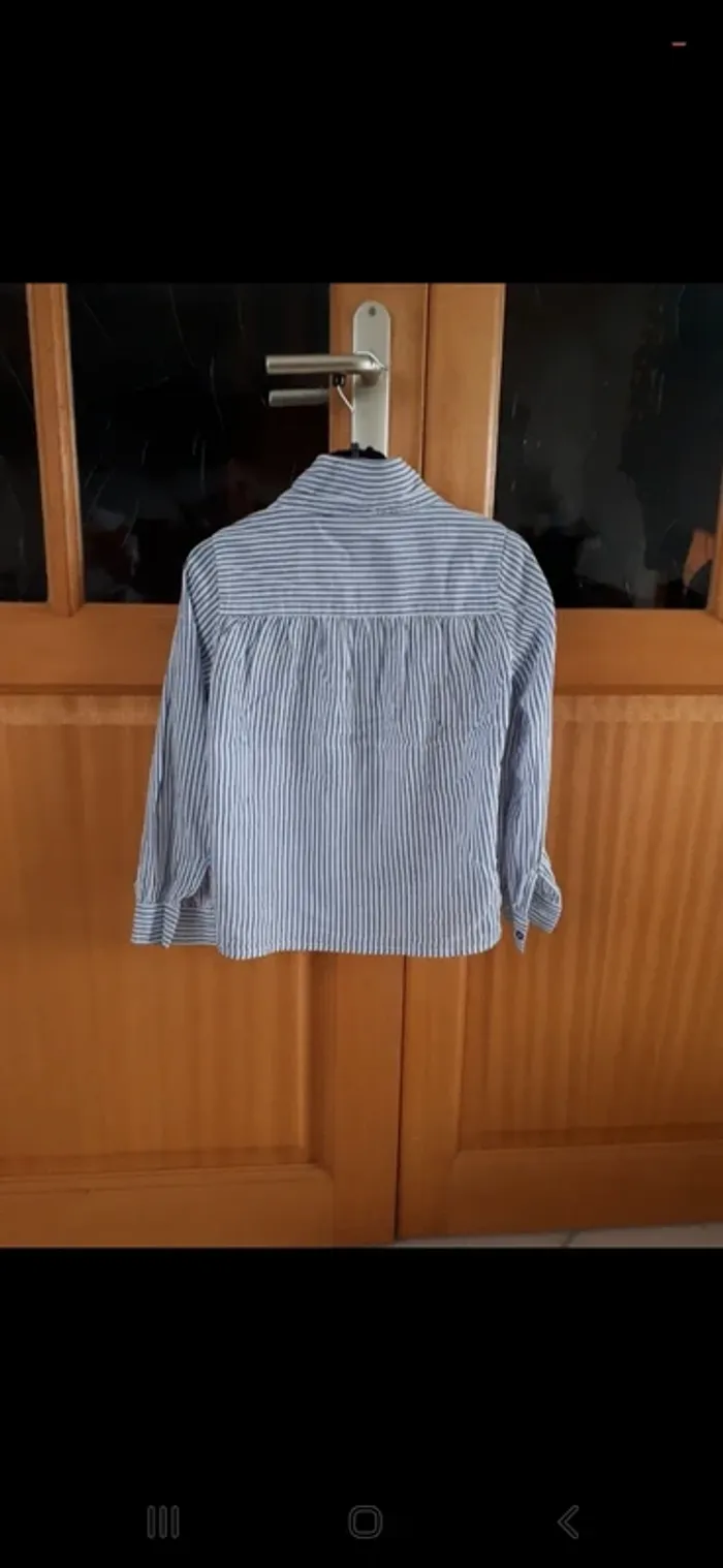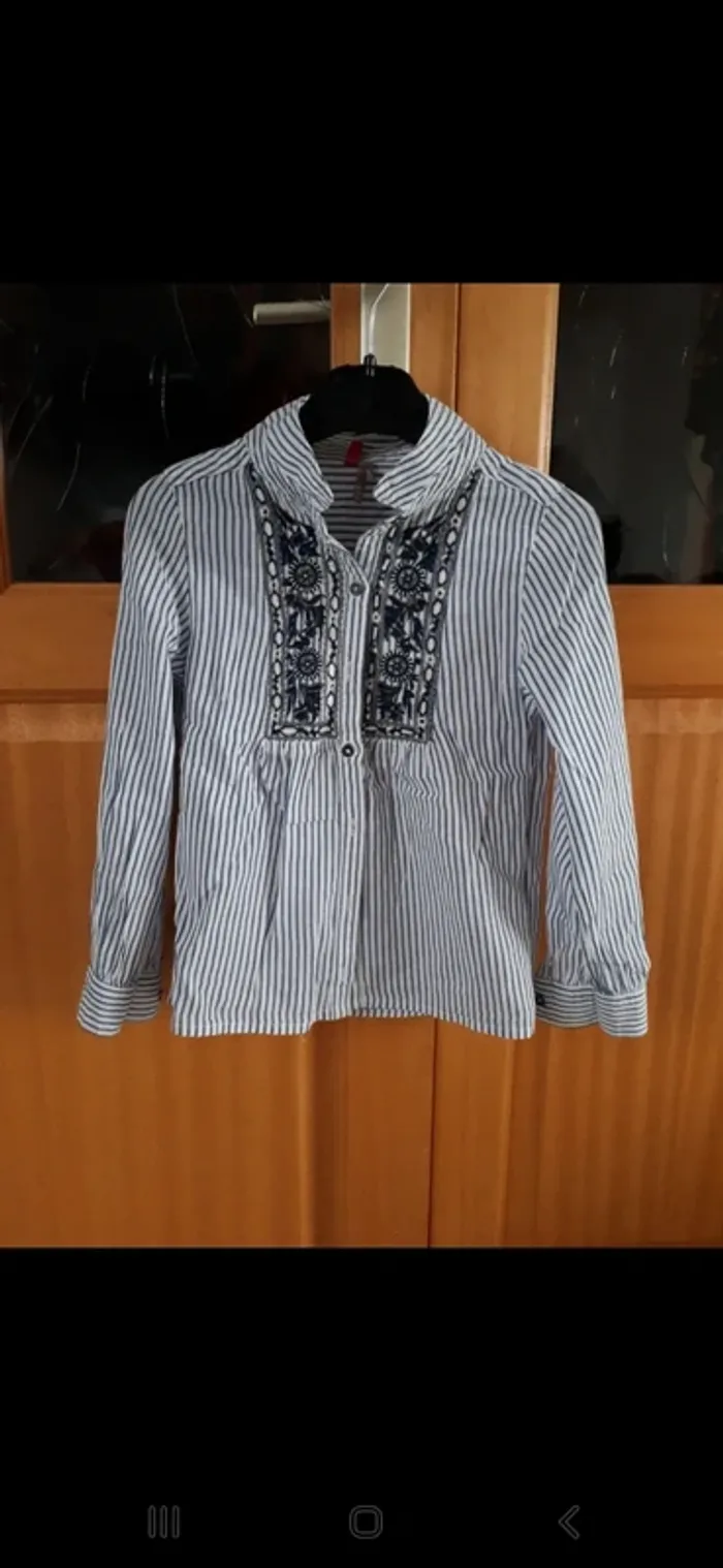Belle chemise manches longues avec joli motif sur le devant Fermeture par boutons et boutons aux manches Couleur blanc et bleu marine Très bon état #8anslucie100281