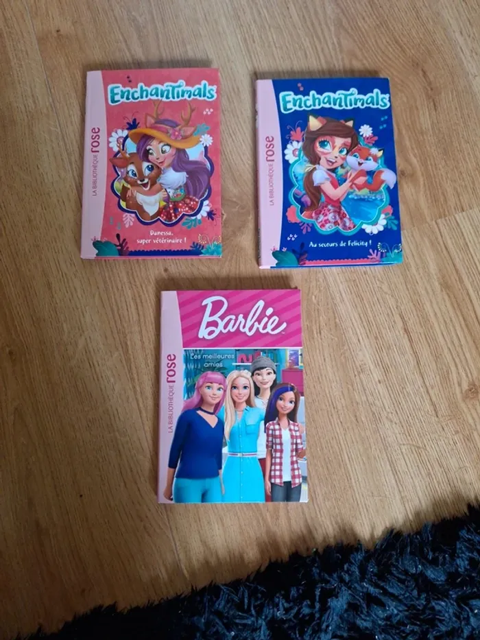2 livres entchantimals 1 et 2 Barbie numéro 5 Une page légèrement cornée sur le livre barbie