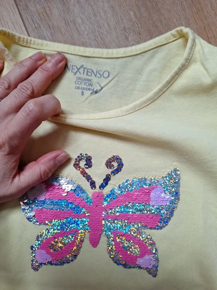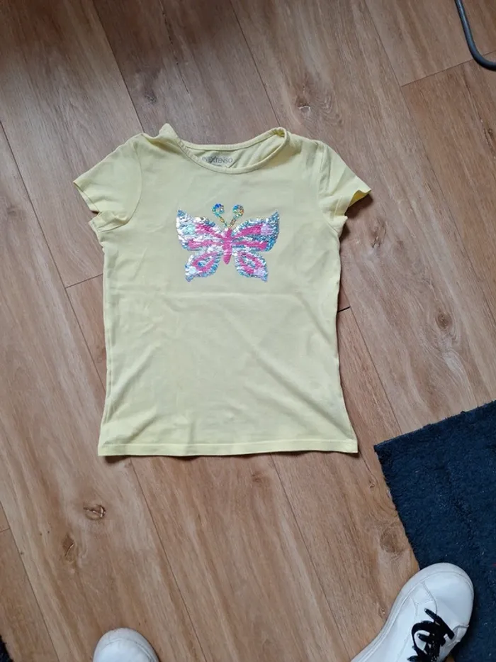 Tee shirt sequins réversibles motif papillon En très bon état Juste un léger trou caché par les sequins cf photo 4 #8anslucie100281