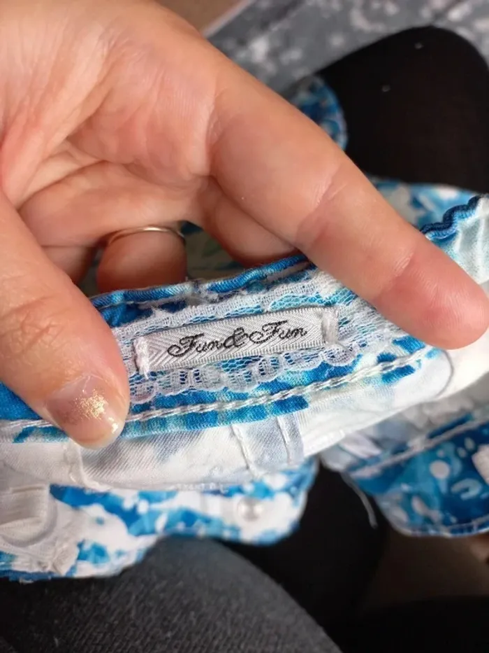 Pantalon fleuri 6 ans bleu et blanc