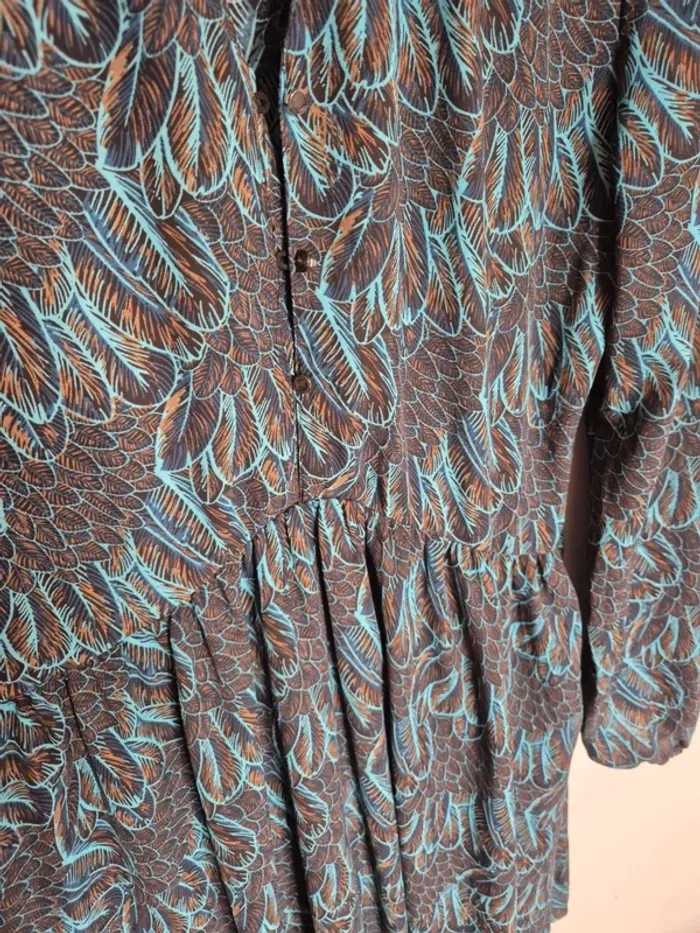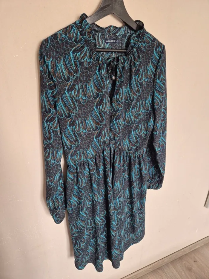 📌 Lot 20% de remise pour l'achat de 5 articles, suite ... Robe longueur genou, noir et verte à motif, élastique sur le bords des manches, ,lien à nouer sur le devant, boutonnée sur le haut, ➡️Largeur à plat sous les bras  46 cm ➡️Longueur 90 cm ⭐ Etat NEUF ✈Envoi rapide des colis 💗 Abonnez vous à mon profil, nombreux articles ajoutés régulièrement ! 🌸 Tapez Laetitresors pour voir mes annonces #laetitresors_robe36 #robe #bonobo #longue #noir #vert #elastique #manche #boutonée #bouton #feuille #laetitresors