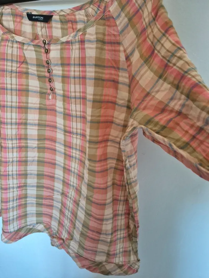 📌 Lot 20% de remise pour l'achat de 5 articles, suite ... Blouse à carreaux, beige et corail, bouton sur le haut, manche 3/4 ➡️Largeur à plat sous les bras  55 ➡️Longueur 57 cm ➡️100% polyester ⭐ Excellent état ✈Envoi rapide des colis 💗 Abonnez vous à mon profil, nombreux articles ajoutés régulièrement ! 🌸 Tapez Laetitresors pour voir mes annonces #laetitresors_blouse42 #blouse #burton #manche #carreaux #bouton #boutonée #chemisier #chemise #fluide #laetitresors