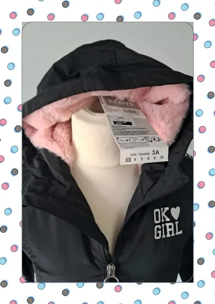 Joli manteau doublé rose 3 ans avec capuche 3 ans.