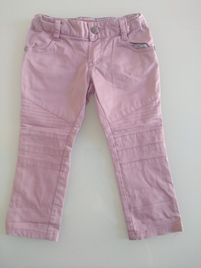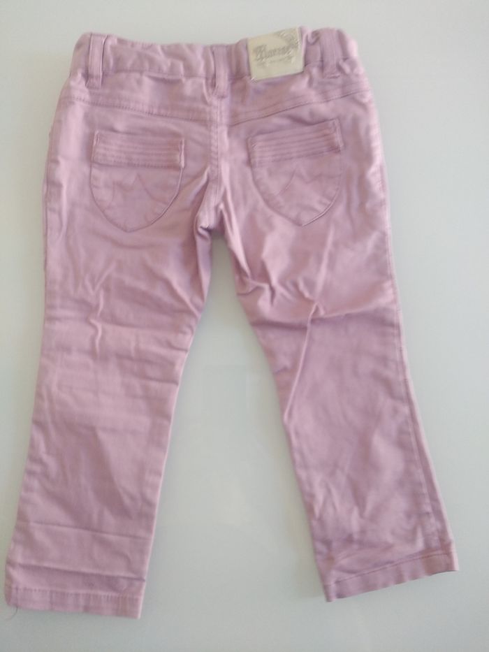 Pantalon rose/lila, taille élastique, possibilité d'ajuster la taille avec élastique intégré et boutons, fermeture éclair, bouton, poches avant et arrière Taille 86 cm, 2 ans Marque MARESE Très bon état