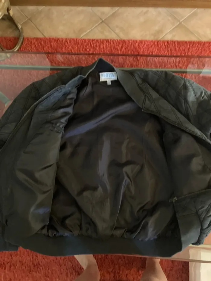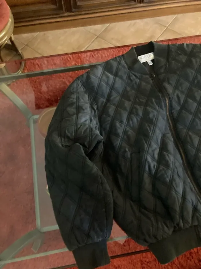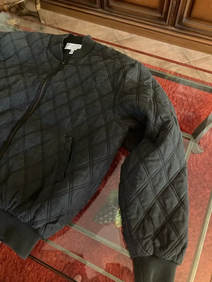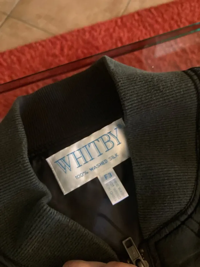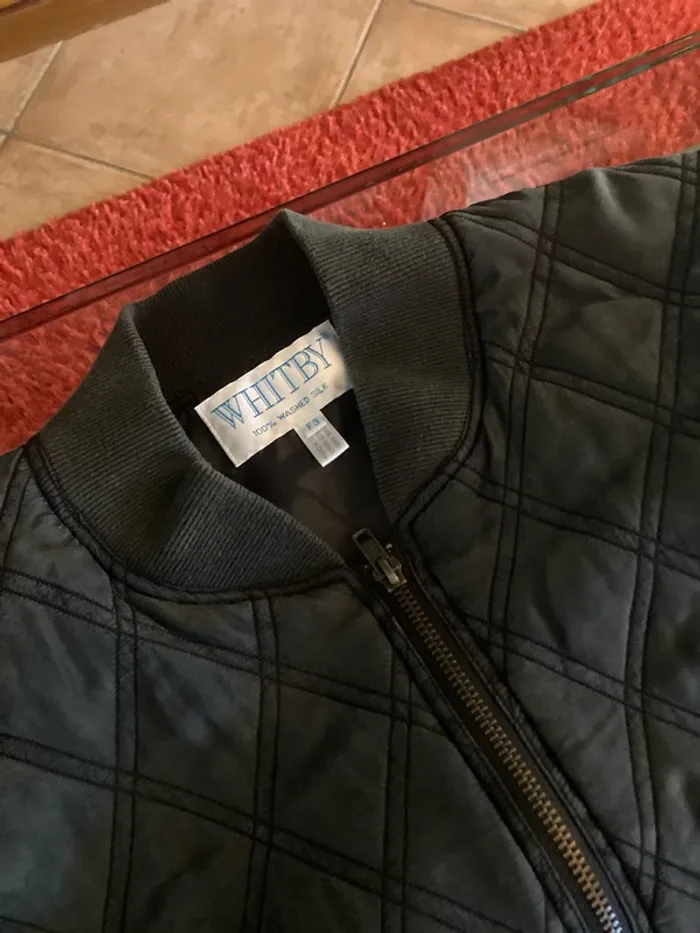 En très bon état, très peu porté Blouson en 100% soie matelassé Couleur gris foncé Silk Bomber Jacket gris foncés épaulettes zippé avant surdimensionner L en soie laver des années 80 vintage #vesteensoie #whitby