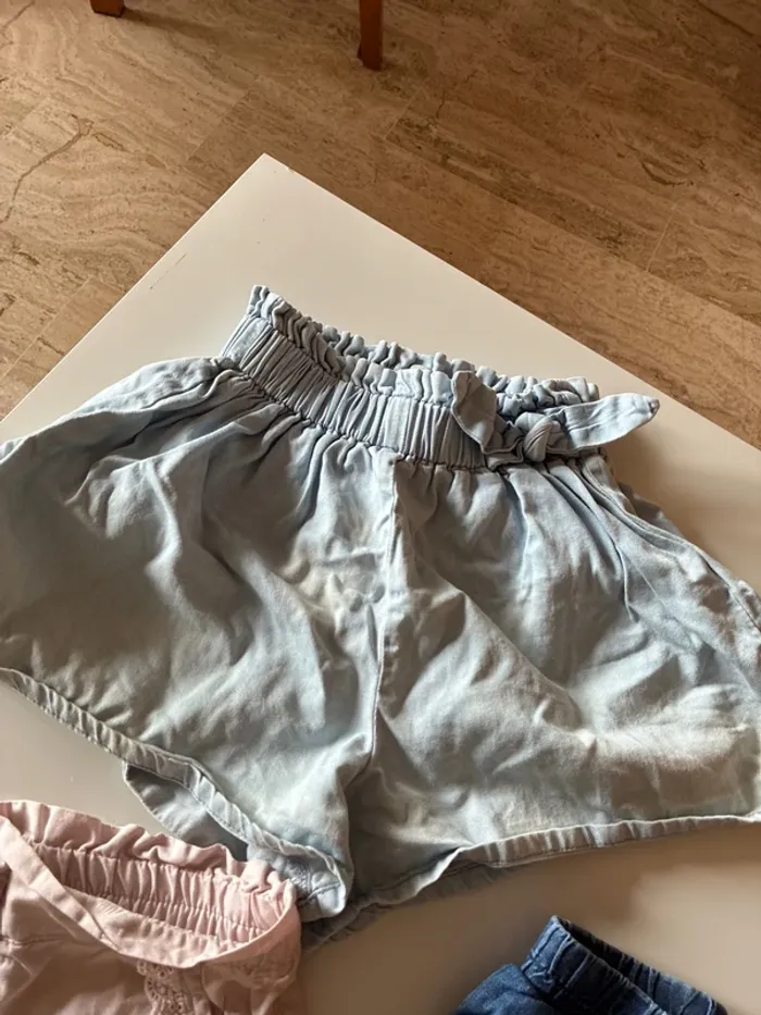 En bon état, le short Kiabi, bleu clair a décoloré au fil des lavages Marques: 2 kiabi, baby club et Hema