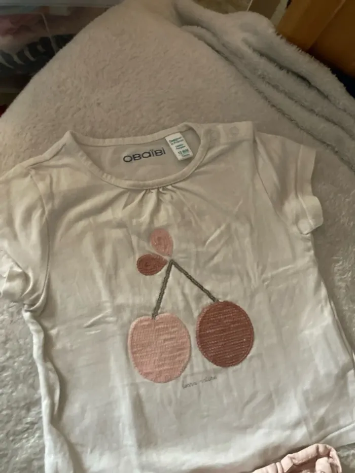 T-shirt, à motifs cerises en très bon état avec son short rose