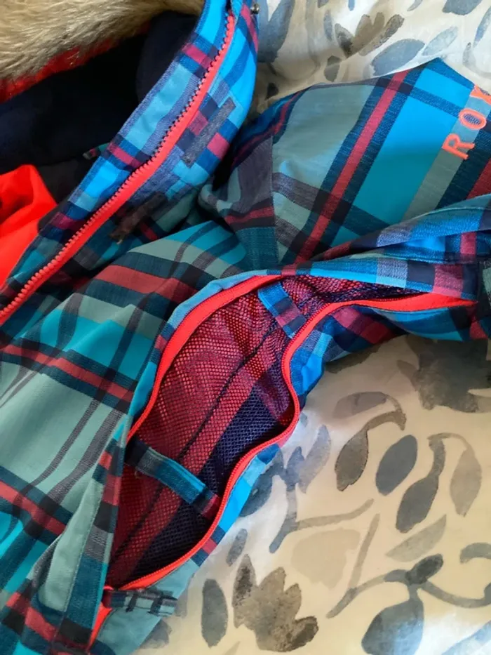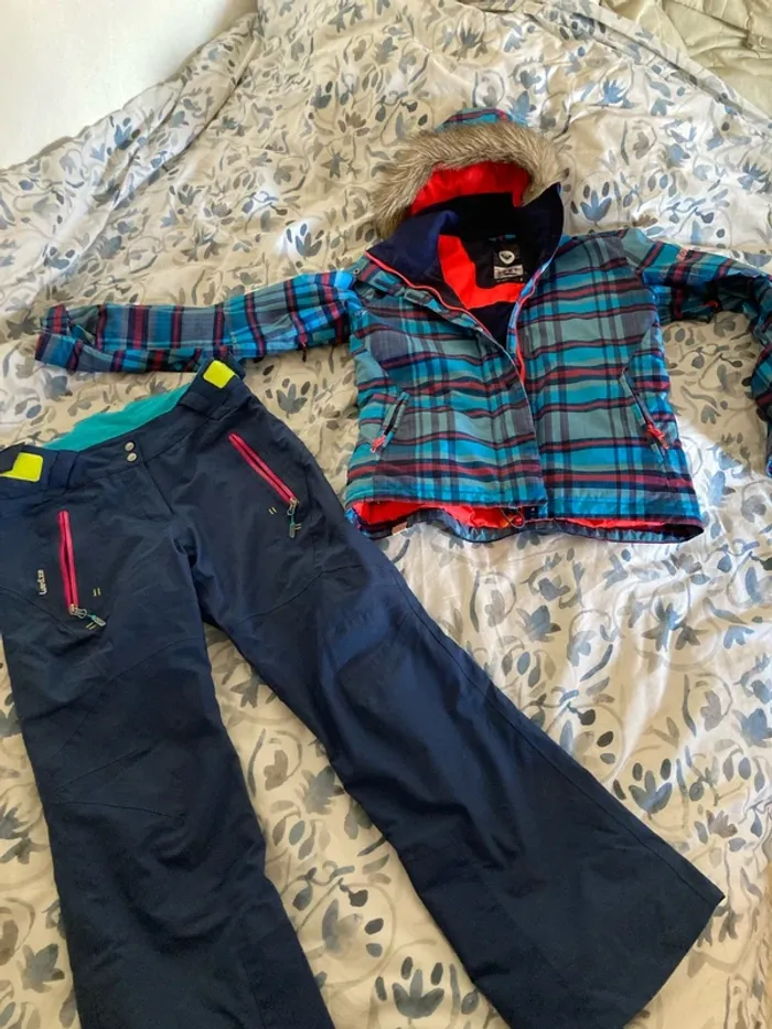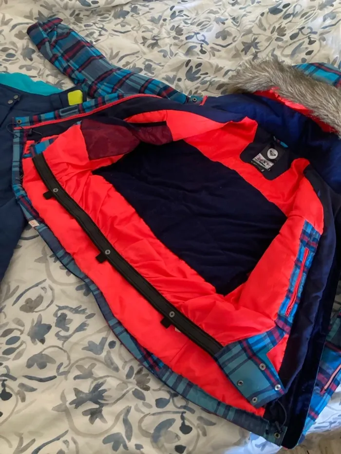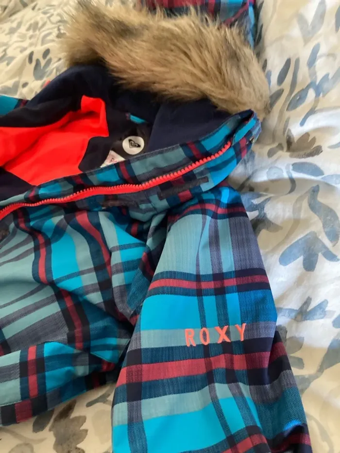 Veste de Snow pour femmes Roxy en très bon état, taille M. Pantalon de ski ou snow Wed’ze comme neuf portait une ou deux fois, taille 38.