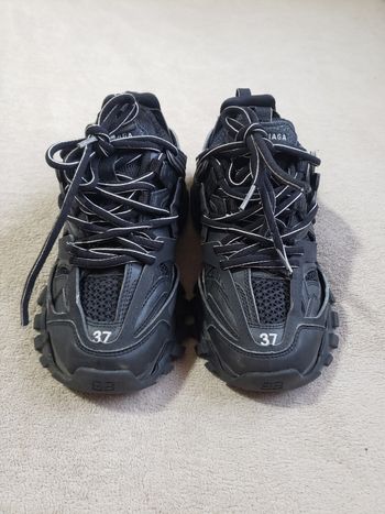 Baskets à lacets de couleur blanche et noire avec semelles épaisses