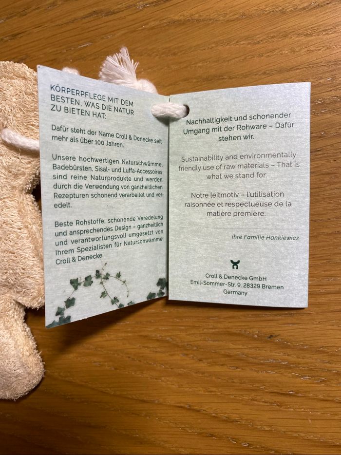 NEUF Éponge exfoliante en kiffe et en forme d’ourson Marque : Croll & Denecke