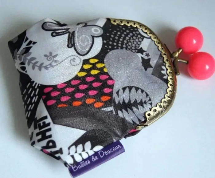 PORTE-MONNAIE RETRO VINTAGE AVEC FERMOIR BOULES ROSES Motif : Psychedelic Dimensions : hauteur 10cm (et 12,5cm fermoir inclus), largeur 8,5cm, peut contenir plusieurs billets et de nombreuses pièces de monnaie. Composition : intérieur 100% coton renforcé, extérieur coton enduit.