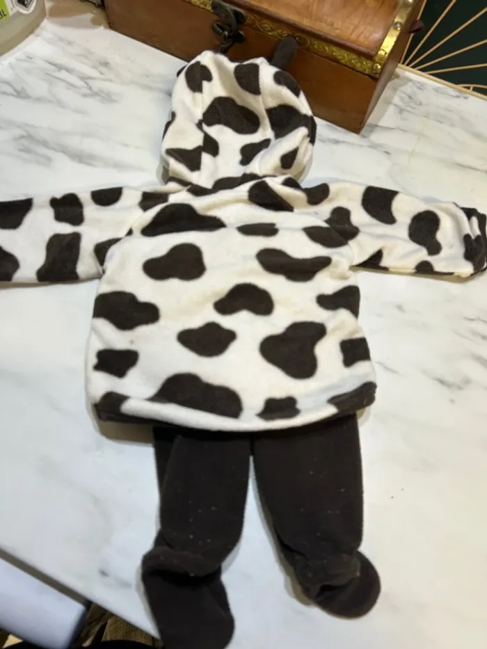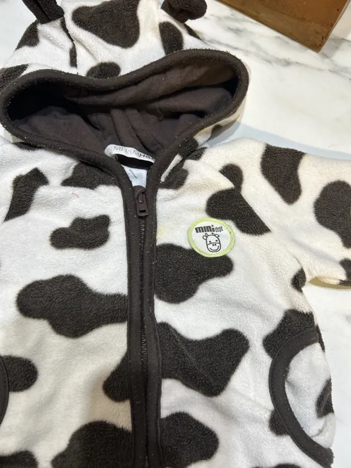 Ensemble polaire Avec gilet zippé à capuche (imitation giraphe) et pantalon à pied 1 petite tache jaune voir photo