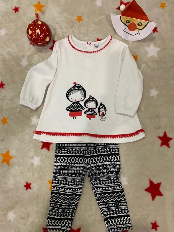 Ensemble T-shirt Manches Longues Legging Blanc, Rouge et Noir 6M - photo numéro 2