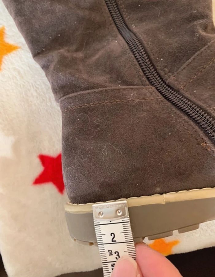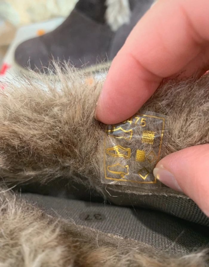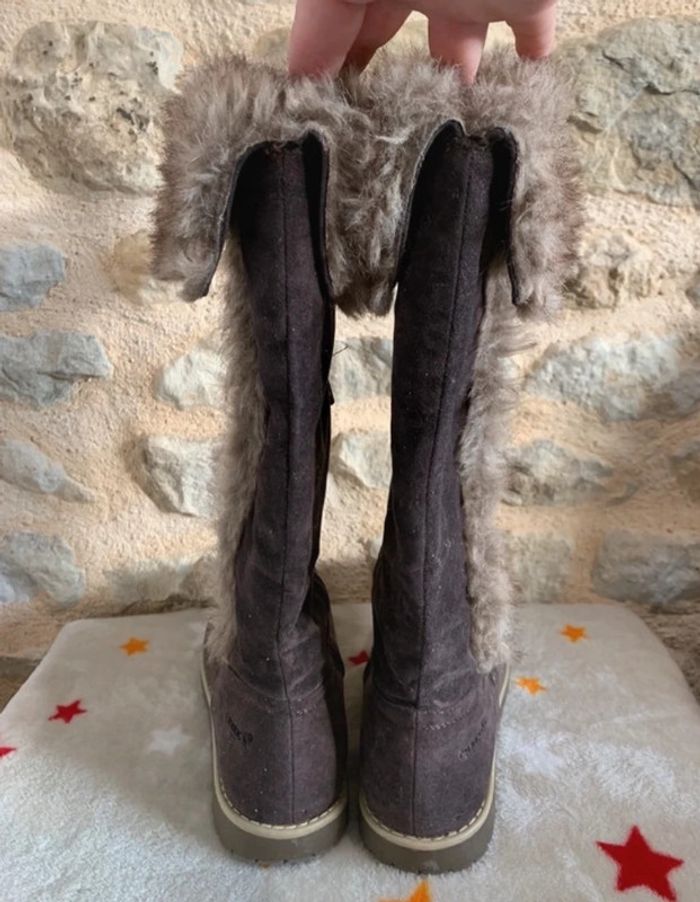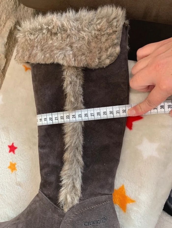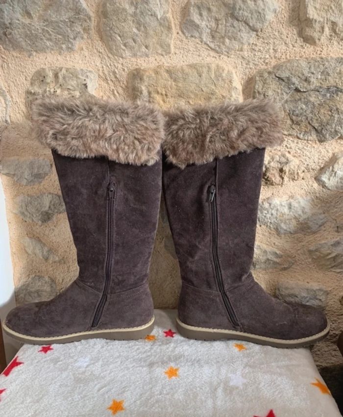 Bottes zippées Forme botte Fermeture zippée sur le côté intérieur Empiècements fausse fourrure sur le haut et sur le côté extérieur Talon plat Bout rond Aspect nubuck Le + mode : leur fausse fourrure Matière et entretien Tige (Dessus) : 100% TEXTILE/SYNTHETIQUE Doublure: 100% TEXTILE/SYNTHETIQUE Semelle extérieure: 100% ELASTOMERE • Fermeture : A enfiler • Tour de mollet: 32 cm environ • Hauteur de botte : 37 cm environ • Hauteur de talon : 2 cm environ Veuillez consulter mes autres articles, je fais un grand tri! #chaussuresBFL14 Tous mes # dans mon profil
