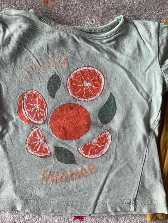 92 cm Joli lot de T-shirts d’été à manches courtes imprimés 100% coton (étiquettes de composition découpées) Un jaune « Paradise Cove » , « Santa Monica » avec un décor de bord de mer (vagues 🌊, soleil 🌞, palmiers 🌴), Bon état (un trou, voir photo) Un vert « Juicy Orange » avec des oranges 🍊 entières et en quartiers Très bon état Veuillez consulter mes autres articles, je fais un grand tri! #36MBFL14 Tous mes # dans mon profil