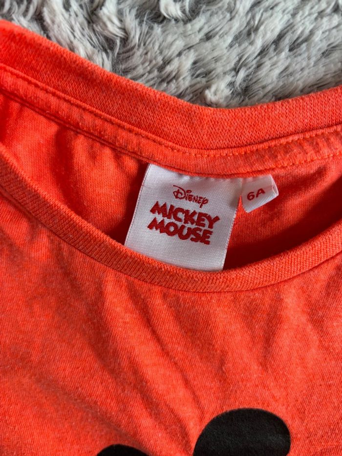 T-shirt manches courtes de la marque Mickey Mouse en taille 6 ans. Couleur orange fluo