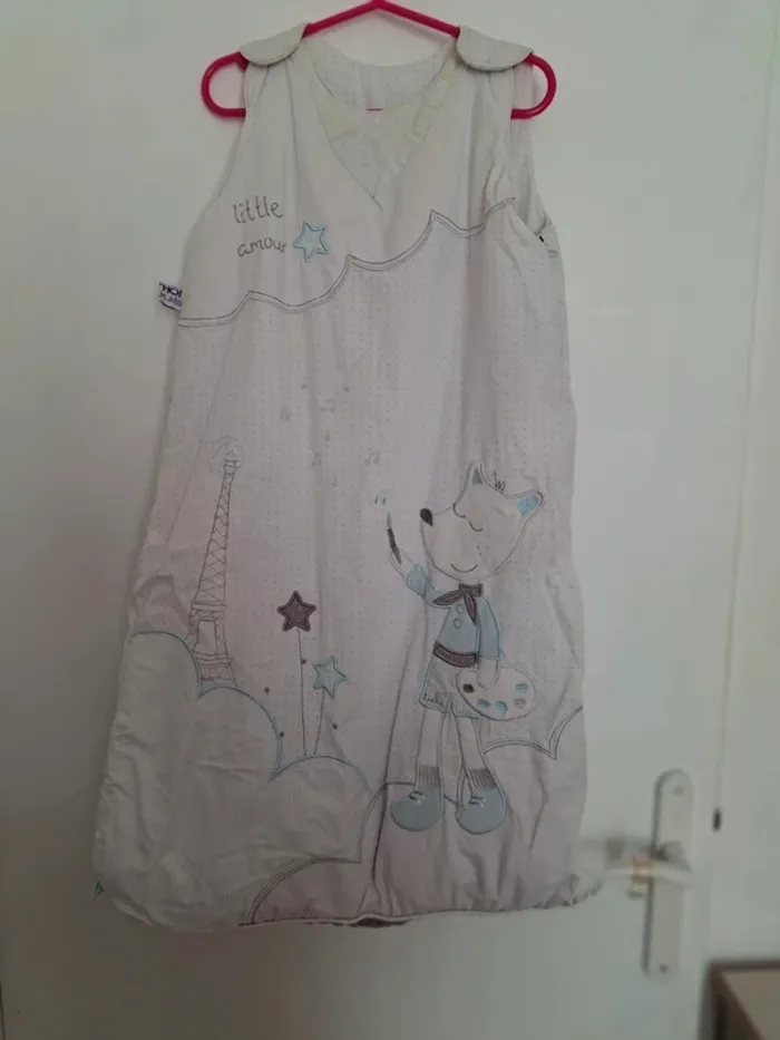 Grand modèle que l'on peut ajuster au petit bébé grâce aux boutons de pression derrière