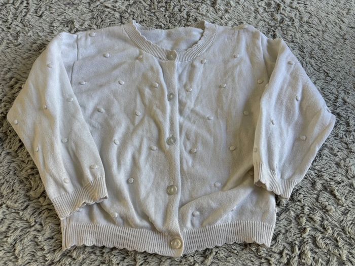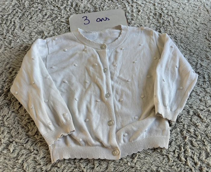 Gilet blanc sans marque en taille 3 ans. ⚠️ un des bouton nécessitera un point de couture car il est un peu tiré