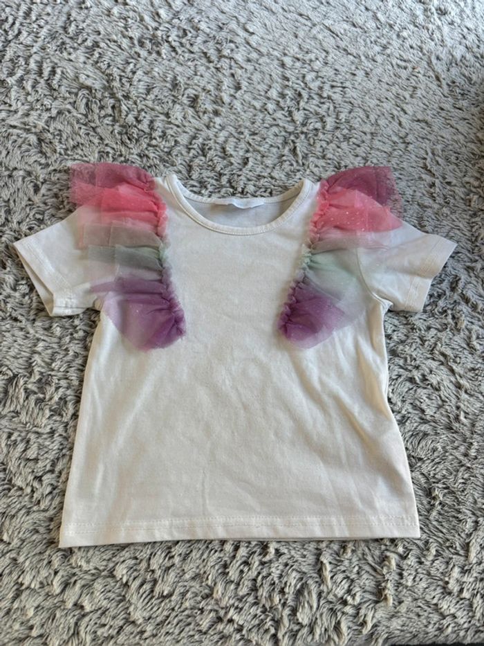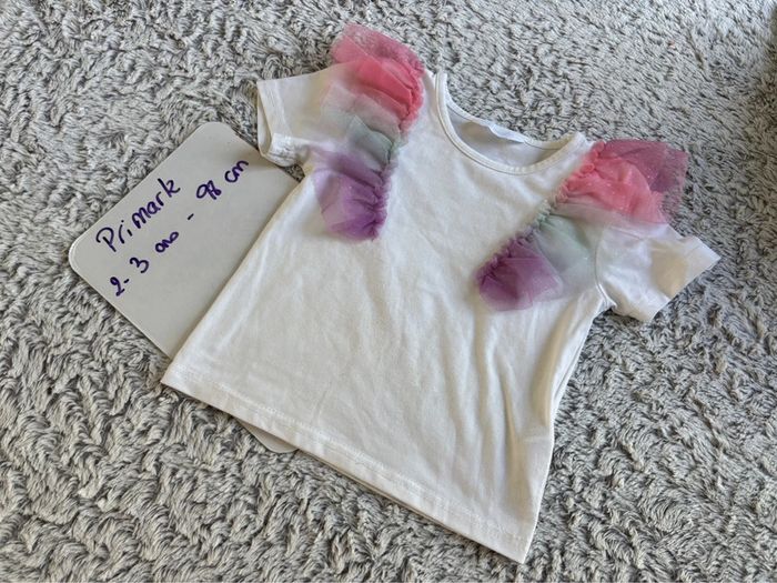T-shirt à volants colorés acheté chez Primark en taille 98cm