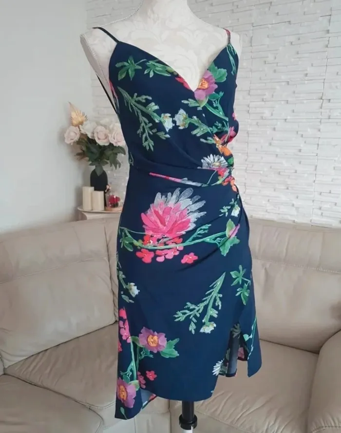 Robe ete habillée bleu rose fleurie la furia taille S 36 - photo numéro 1