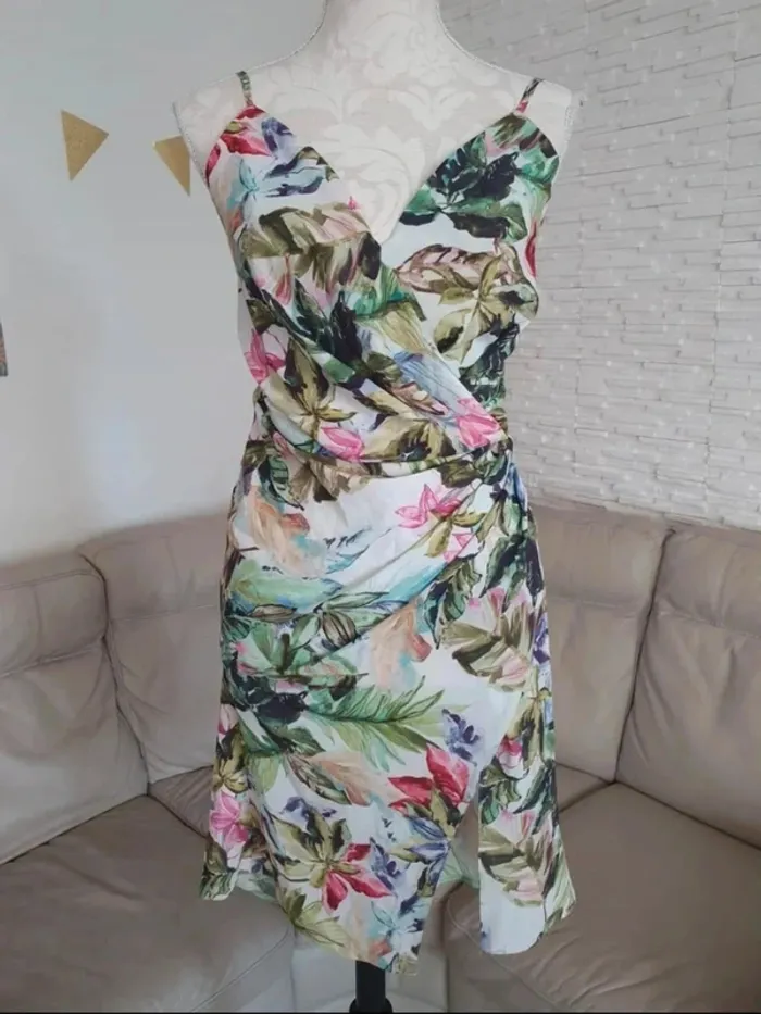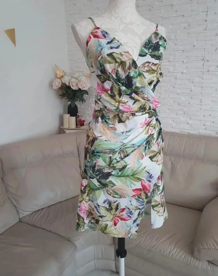 Robe été habillée vert blanc crème fleurie la furia taille S 36 - photo numéro 1