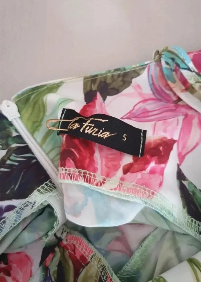 Robe été habillée vert blanc crème fleurie la furia taille S 36 - photo numéro 4