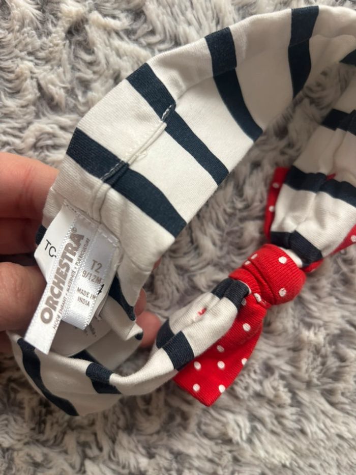 Bandeau acheté chez orchestra, étiqueté 9-12 mois mais taille grand.