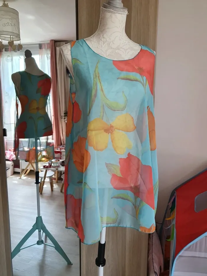 Transparents à mettre sur un débardeur ou maillot de bain A fleurs turquoise orange rose rouge Taille unique jusqu'à la taille 40 L J'ai le même en noir #delphinegartaillel #delphinegarnew