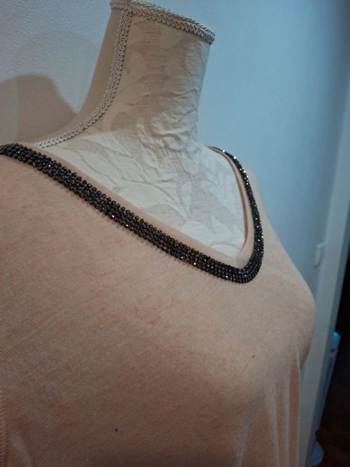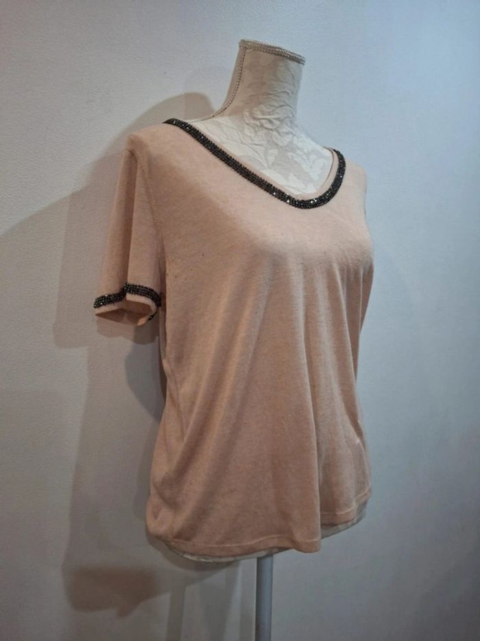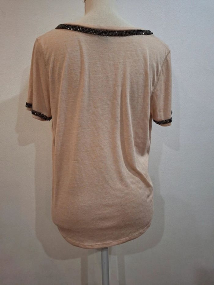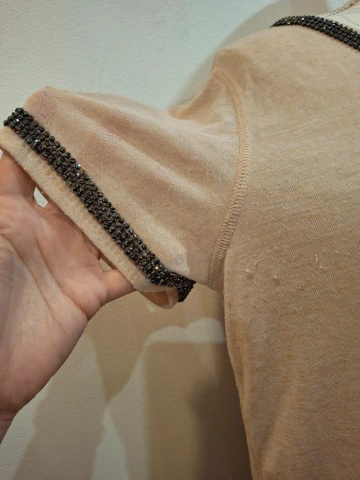 Tee shirt beige rose poudre strass brillants gris H&M taille S 36 - photo numéro 7