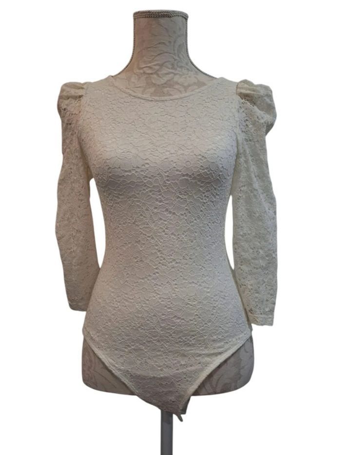 Haut manches longues blanc dentelles body bodie naf naf taille XS 36 - photo numéro 1