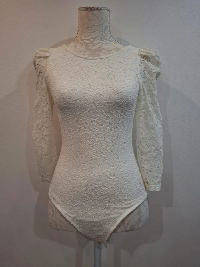 Haut manches longues blanc dentelles body bodie naf naf taille XS 36 - photo numéro 3