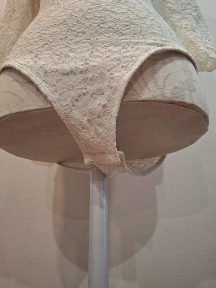 Haut manches longues blanc dentelles body bodie naf naf taille XS 36 - photo numéro 4