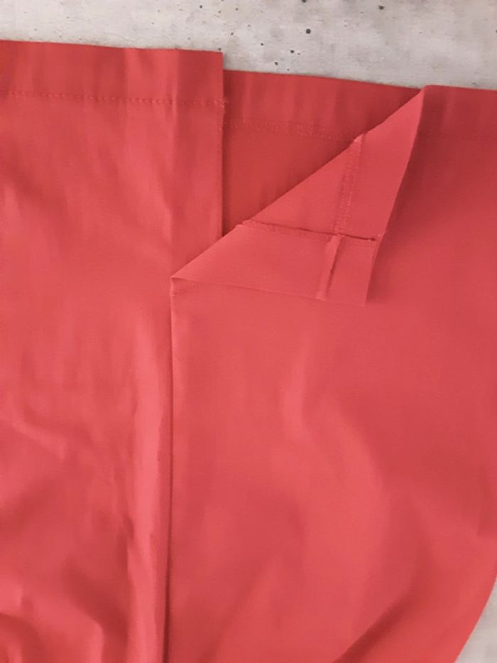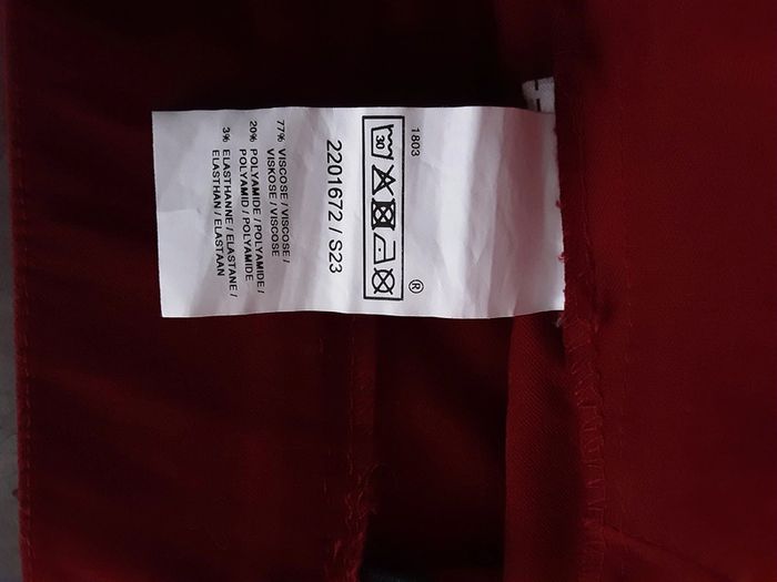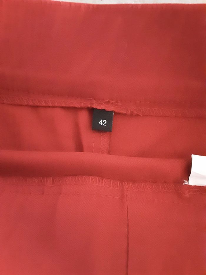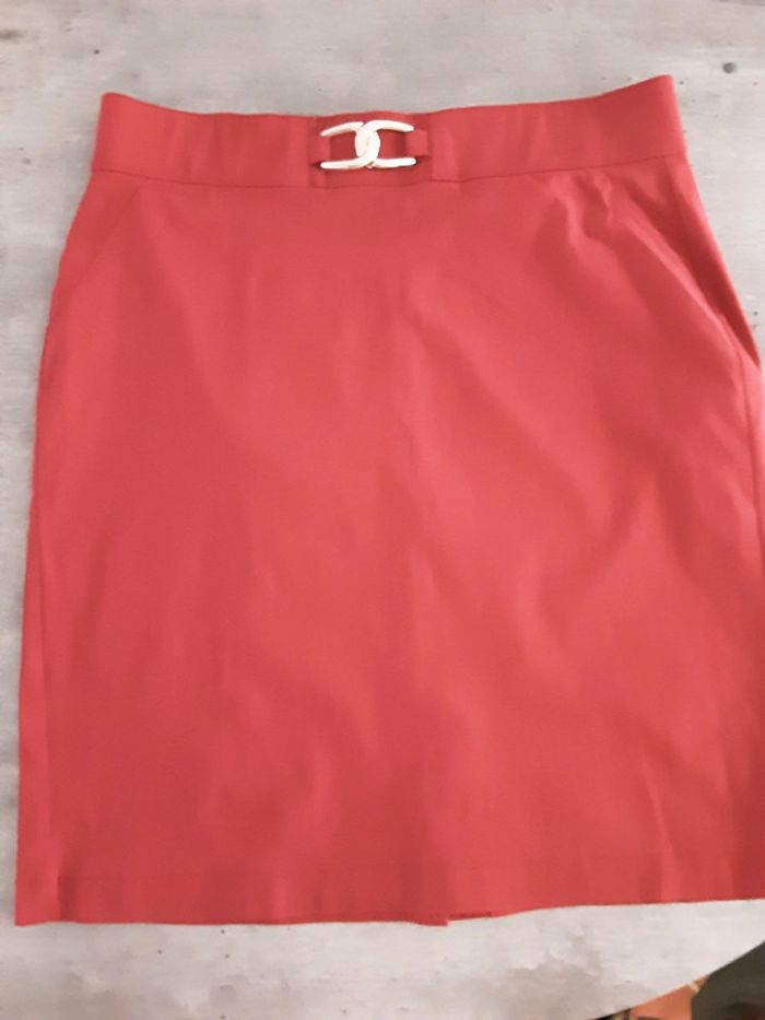 Portés 1 ou 2 fous ,en très bon état. Haut léger, en viscose. Jupe droite, pli d'aisance derrière, contient de l’elasthane. Pas de poches.