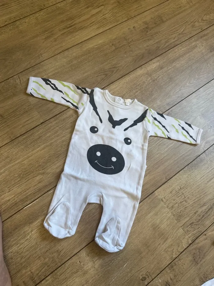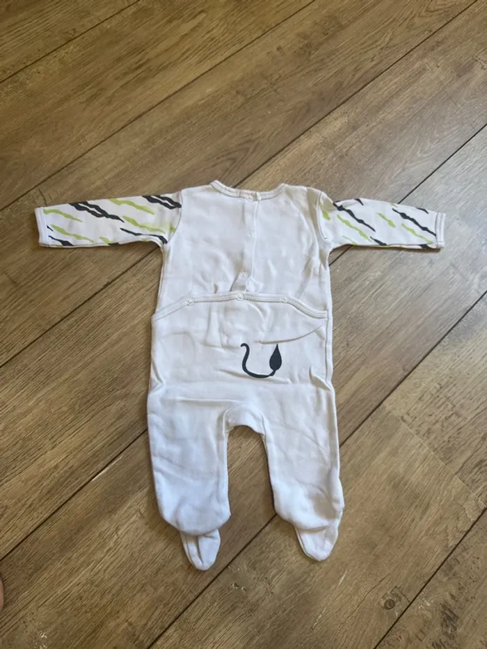 Pyjama en coton, idéal pour l’été ou la mi-saison Taille 3 mois Motif zèbre avec petite queue derrière Très bon état