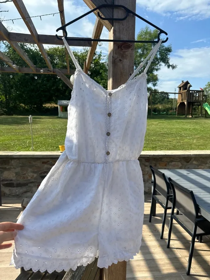 Combi short en dentelle blanche Très légère et idéale pour l’été Très peu portée Taille 36/S Bretelles réglables Élastique légèrement coloré sur un cm