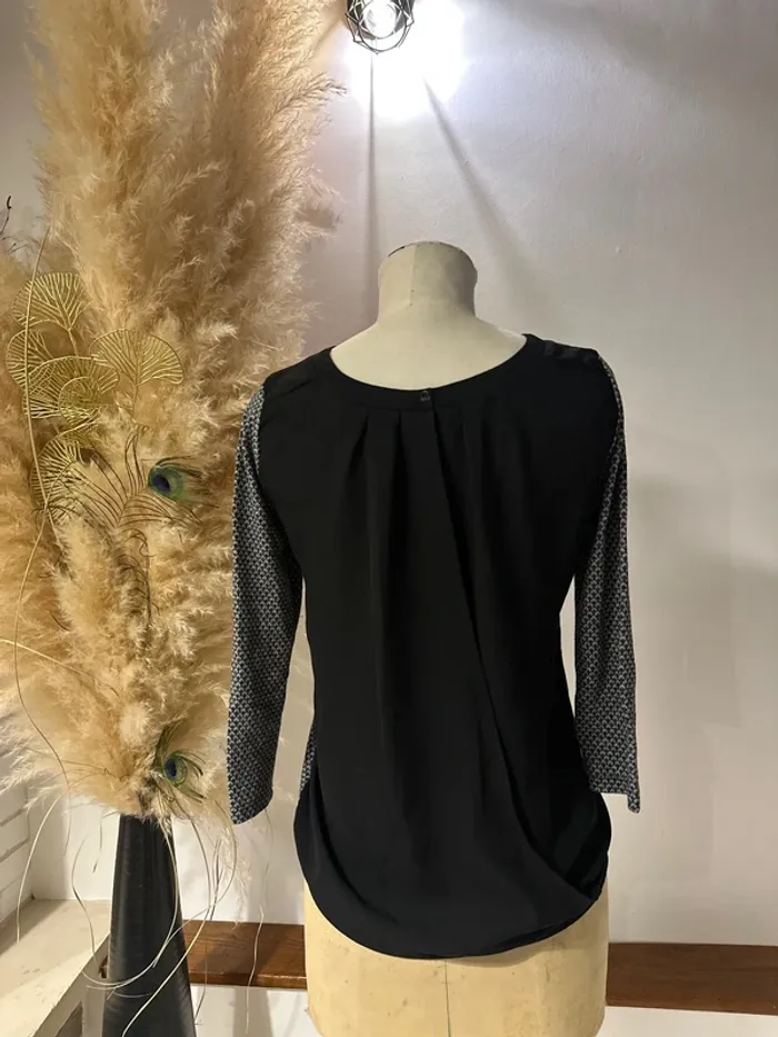 Joli haut habillé à manches 3/4 Devant tweed doux et derrière en voile noir Taille 36 Très bon état