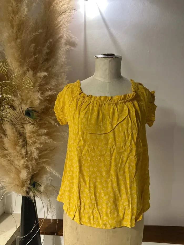 Joli petit top fluide pour l’été Épaules dénudées, col large élastique Neuf, jamais porté, rangé seulement dans un placard Taille 38/M Kiabi