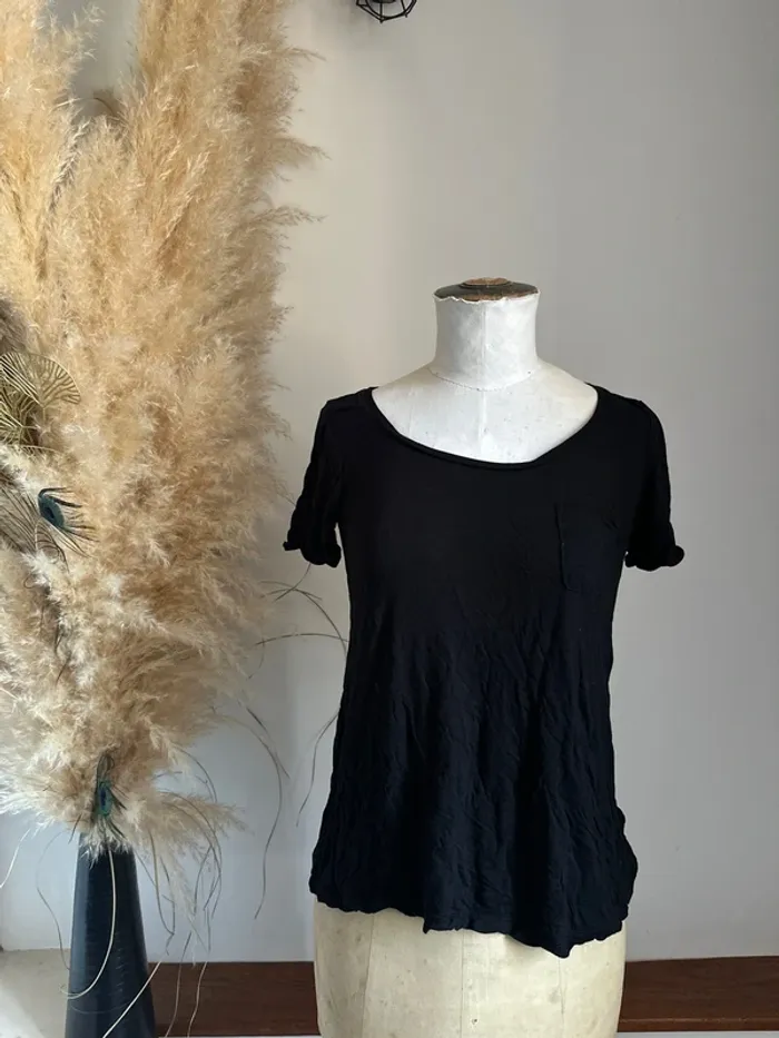 T-shirt noir en matière très légère et fluide Une petite poche sur le devant Taille 36 Très peu porté Nécessitera un petit repassage !