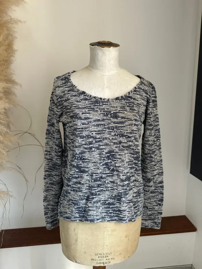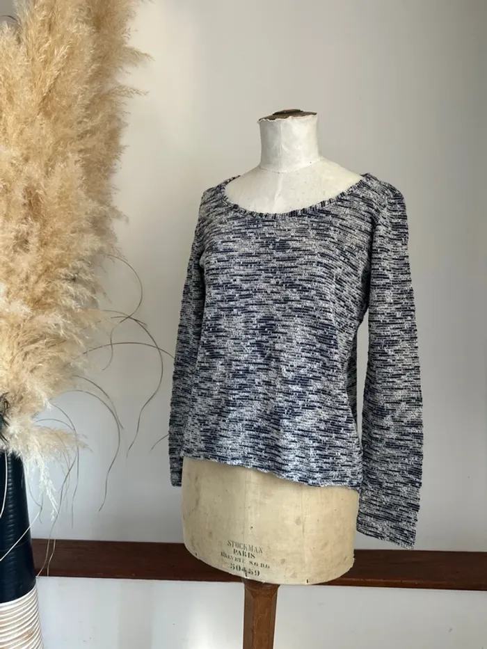 Joli pull mai saison Gris et bleu chiné avec voilage bleu marine dans le dos Taille S Pimkie Très bon état