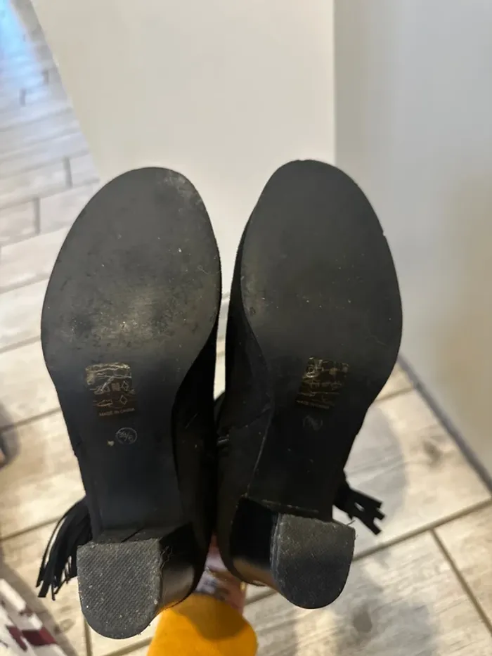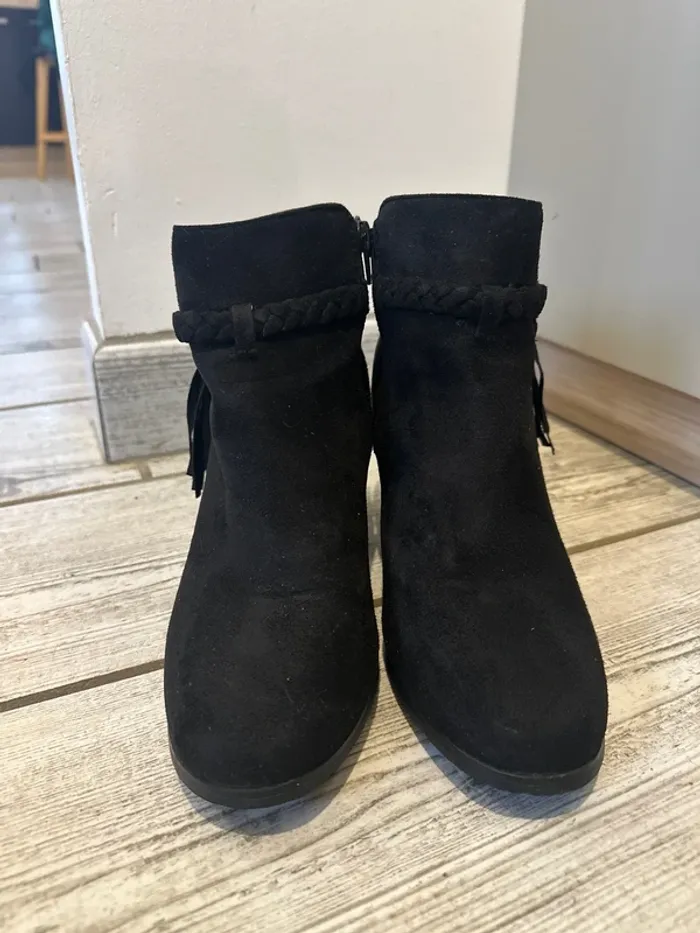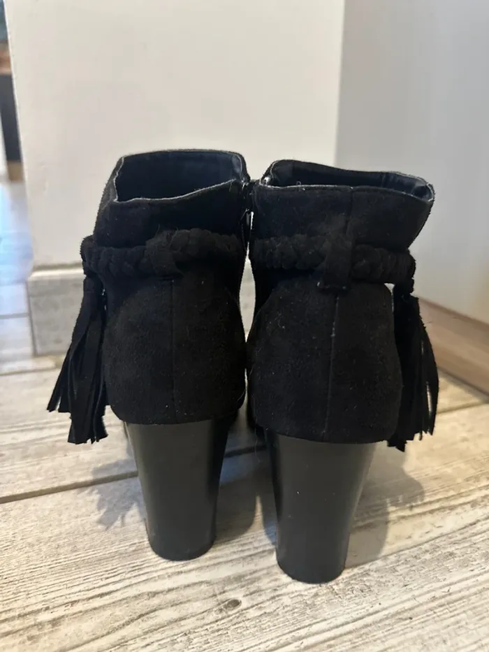 Jolies paire de bottines basses noires en velours / suédine Avec petit pompon sur le côté Excellent état, très peu portées Taille 39 Women Only