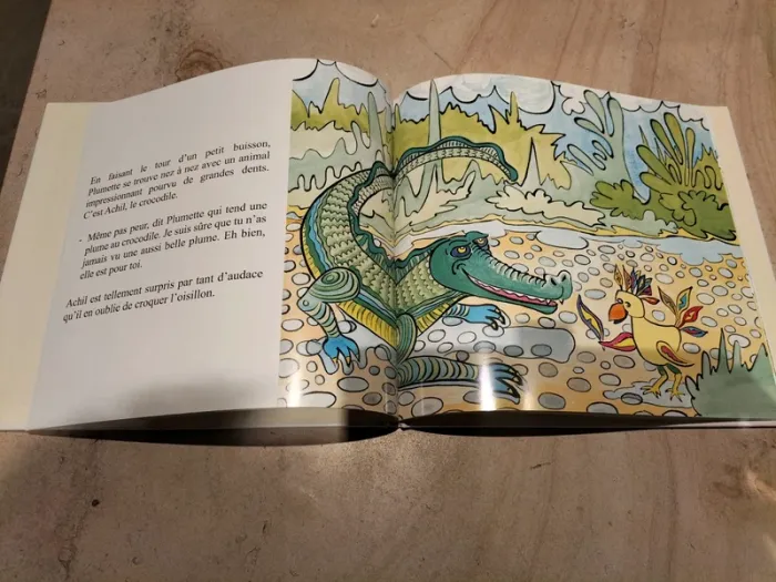 Livre Le vol d'essai de plumette, de Serge Maudet, Société d'édition des artistes peignant de la bouche et du pied. Moyen format 23 cm environ sur 22 cm. En parfait état. Un livre très poétique et très bien illustré grâce à ses artistes peintre étonnants une belle histoire, qui apprend aussi à côtoyer la différence...