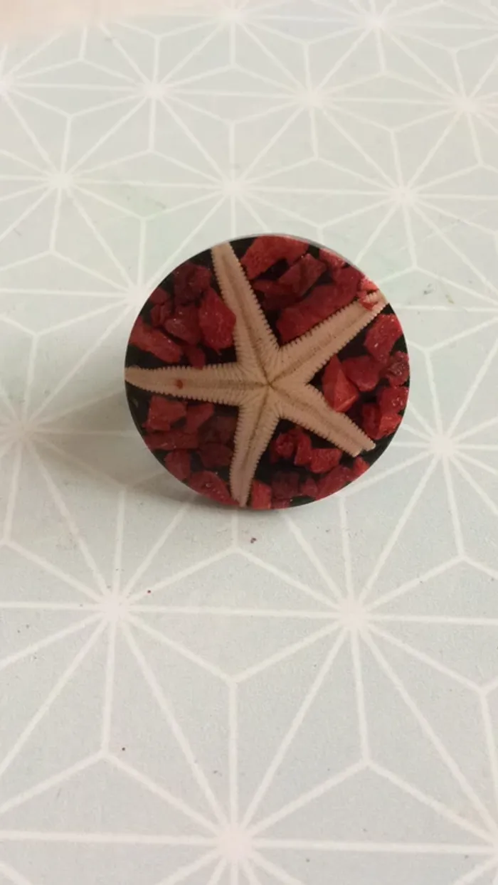 Jamais portée Étoile de mer véritable Tout de doigt 2,2 cm de diamètre interne Étoile de 3,8 cm Matière bois