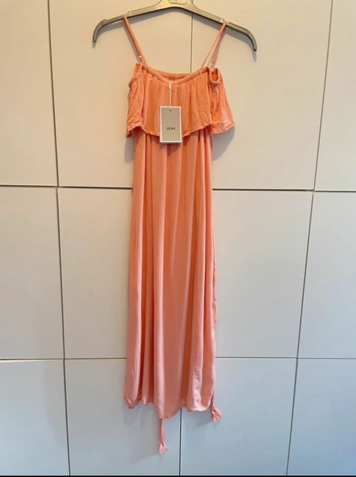 Robe longue rose poudrée corail à bretelles fines ajustable . Taille XS avec 120 cm de long Ceinture assortie De nombreux articles en taille XS et S pour créer un lot