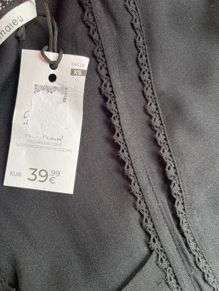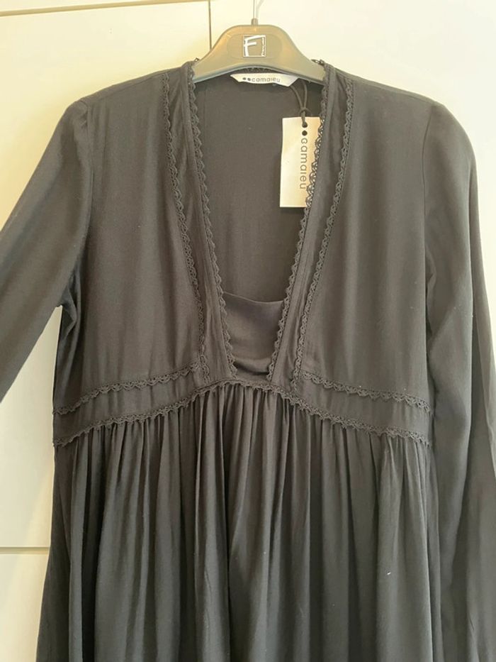 Robe noire manches longue assez fluide De la marque Camaïeu Taille xs avec 46 cm aisselle à aisselle et 83 cm de long 🧵tissu très agréable au toucher en viscose